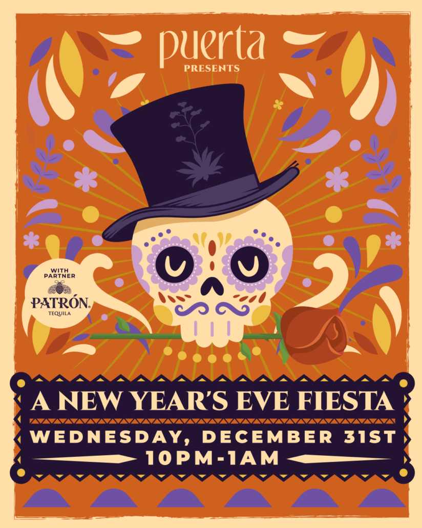 Ring in the new year Puerta-style with a full open bar, plenty of light bites, and a taco station serving your favorites. Dance the night away to vibes brought to you by DJ Trife and say “hello” to 2026 with a champagne toast at midnight!